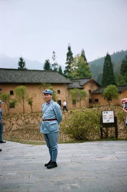 平时这里游人不多。进入大门后,里面充满了田园诗般的自然气息。整个建筑群坐北朝南,均为土木结构。毛泽东率工农红军第一次进驻大井村时就住在这里,此后一直是毛泽东同志在大井的住所。我们看到,老宅的内部与毛泽东此时的居所一模一样。“一切反动派都是纸老虎”这句革命经典口号,据说是毛泽东同志在这里接受记者采访时说的。