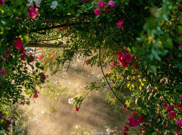 据介绍,每年4月下旬,园内全是高高低低、密密匝匝盛开的玫瑰,艳丽且缤纷,浪漫而唯美。