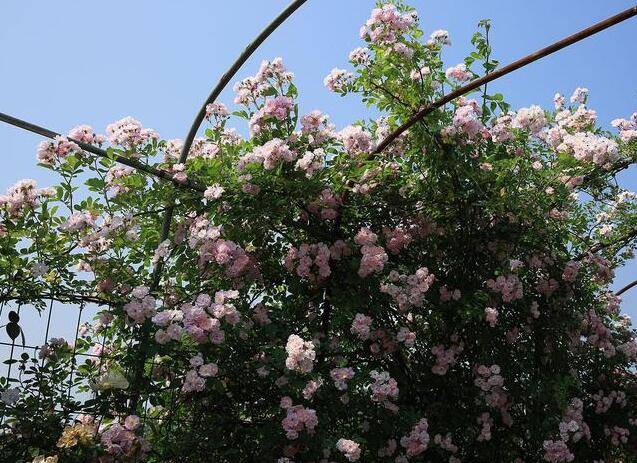 离开中心位置,沿花廊和花架上行,点点花蕾,从绿叶中探出头来活泼而有趣。