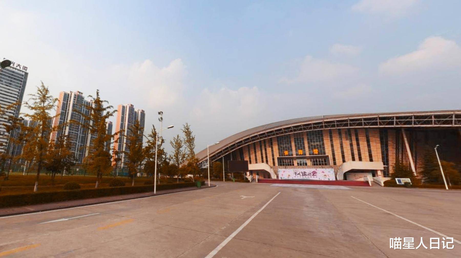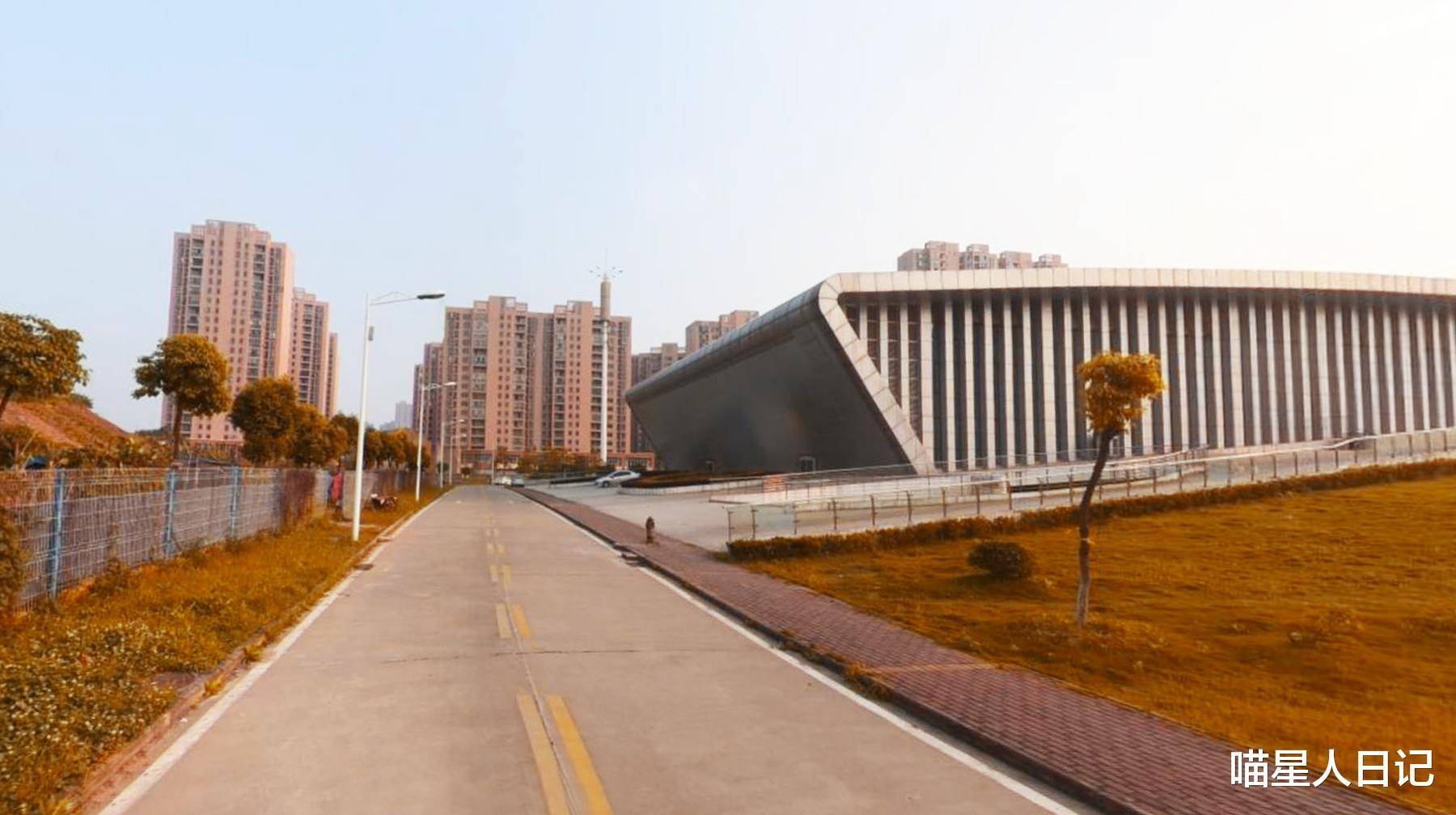 体育馆前有南北两条主干道,修建得十分豪华。在北面,最近的道路上满是行道树和草坪。看起来很开阔,让青城华府小区隔一条马路近在咫尺。没有活动的时候,小路空无一人,倒在路上的狮子也很少有人收拾清理,所以道路看起来更加整洁自然。有骑自行车的小朋友经过,绕着体育馆转一圈,来回跑几圈,标准的越野比赛。春季天气晴朗,适合外出。在水泥路上,没有机动车的干扰,一切行动和活动都变得无拘无束。真是个好地方。