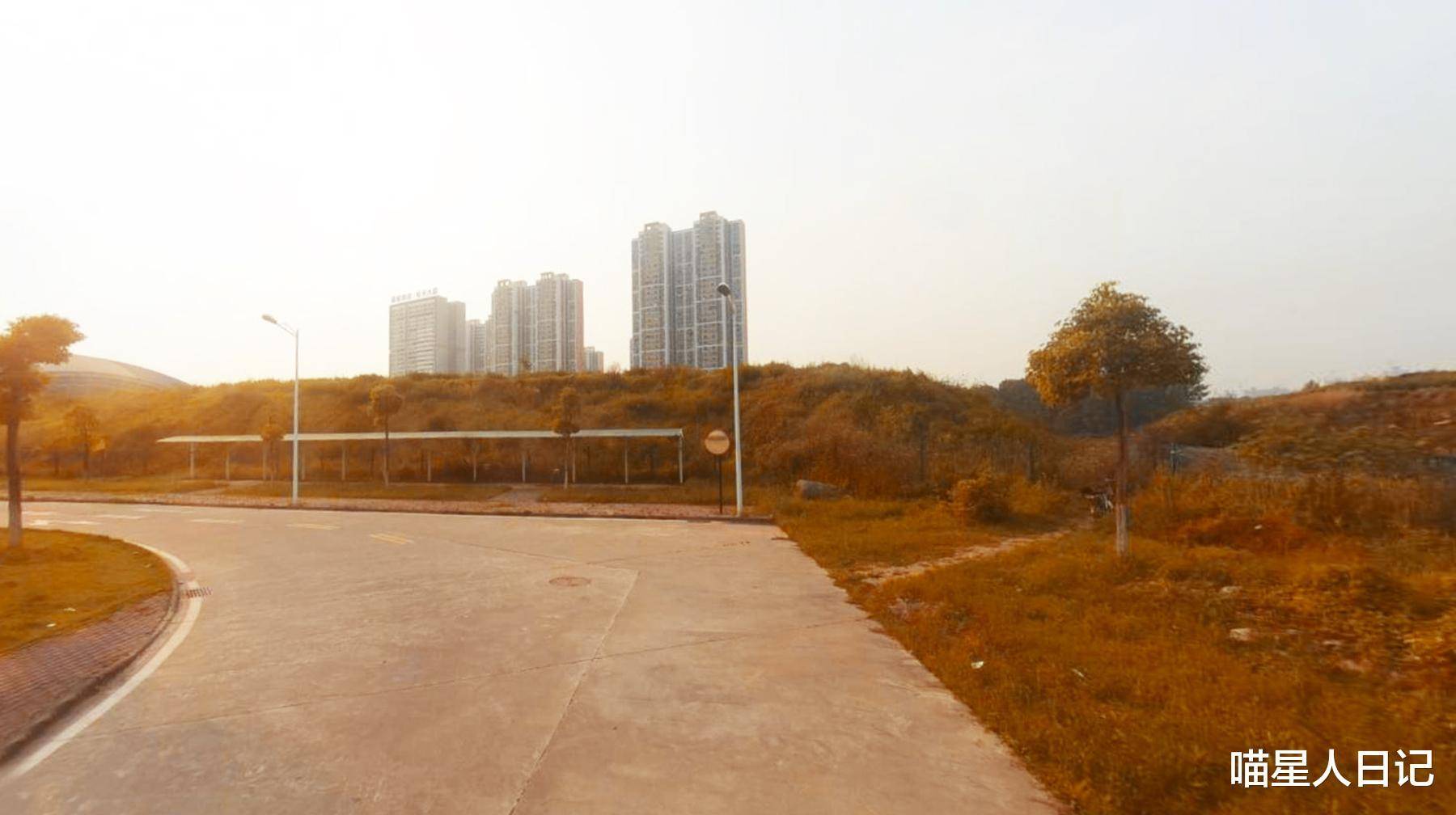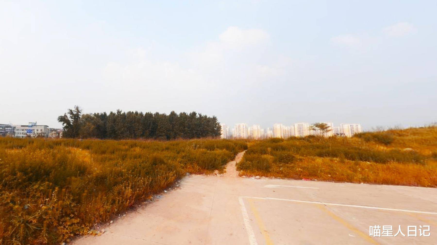 与门口繁华的闹市氛围不同,走到体育馆的拐角处,其实是一片待开发的区域。该地区没有分界线,水泥路戛然而止,停车场的挡板也没有竖起。上面的地势略高,杂草丛生。附近的野草长得很高,伸延一截,空无一人,中间不知为何被踩出了一条小路,黄泥绵延,消失在草垛里。而在草垛的尽头,茂密的樟树也春意盎然,与远处城市建筑的轮廓融为一体。