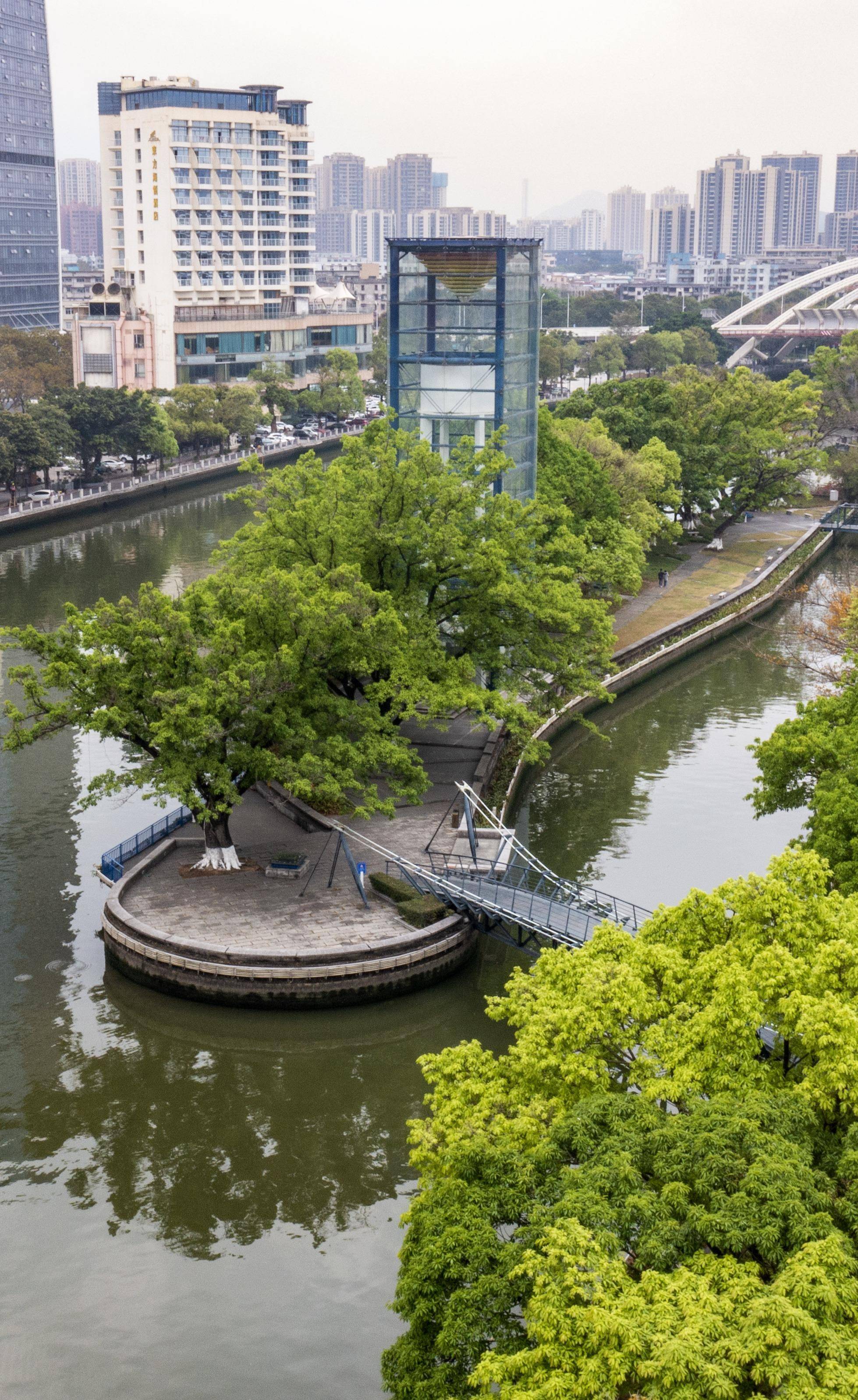 从高处俯瞰,綦江公园就像一艘漂浮在水中的小船。绿意盎然,鲜花盛开,在中山的城市景观中脱颖而出,营造出美丽时尚的格调。