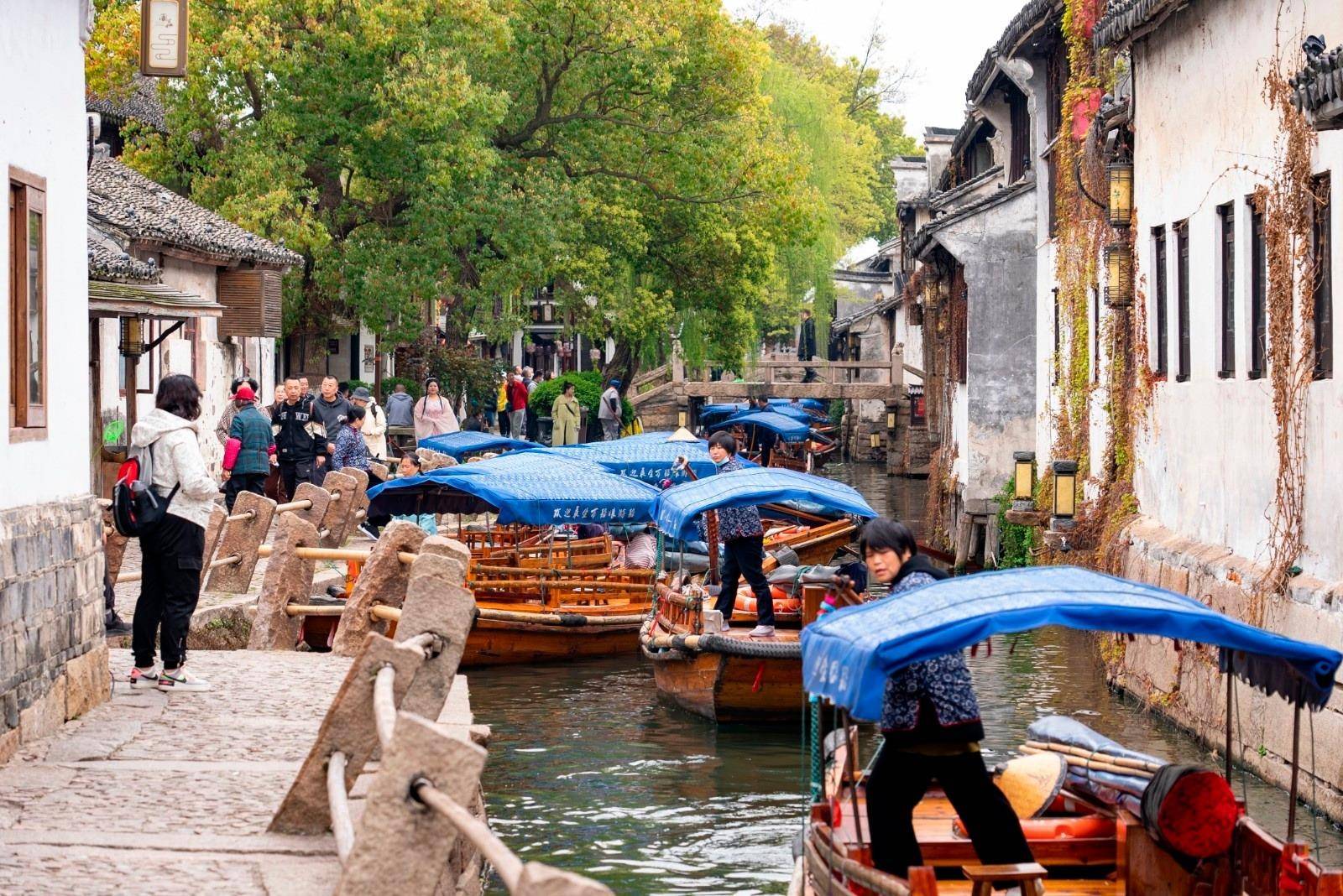 江苏省昆山市周庄古镇游人如织。(图片由CNSPHOTO提供)
