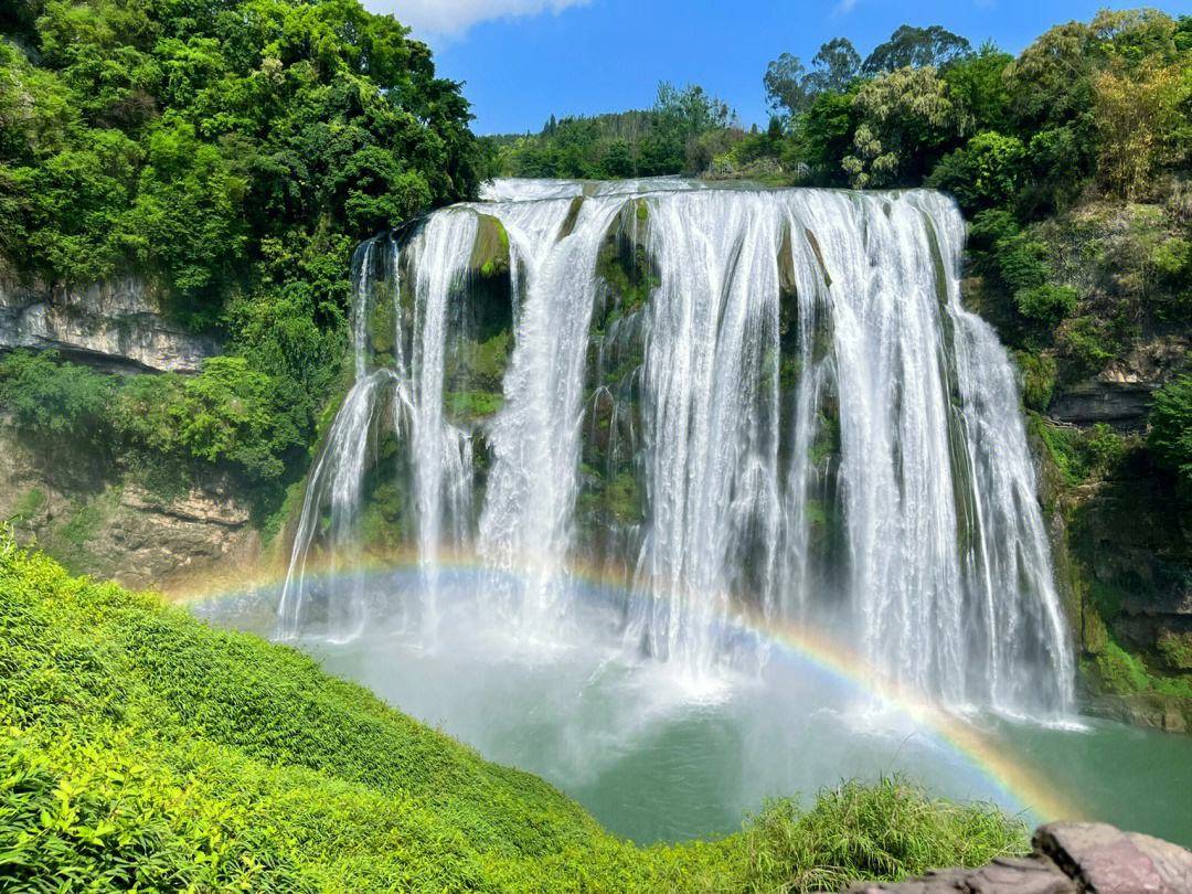 早上,前往贵州最著名的景点之一——黄果树瀑布。黄果树瀑布是中国最大的瀑布之一,高达77.8米,宽约101米,激起的水雾和水气形成一道道美丽的彩虹,非常壮观。