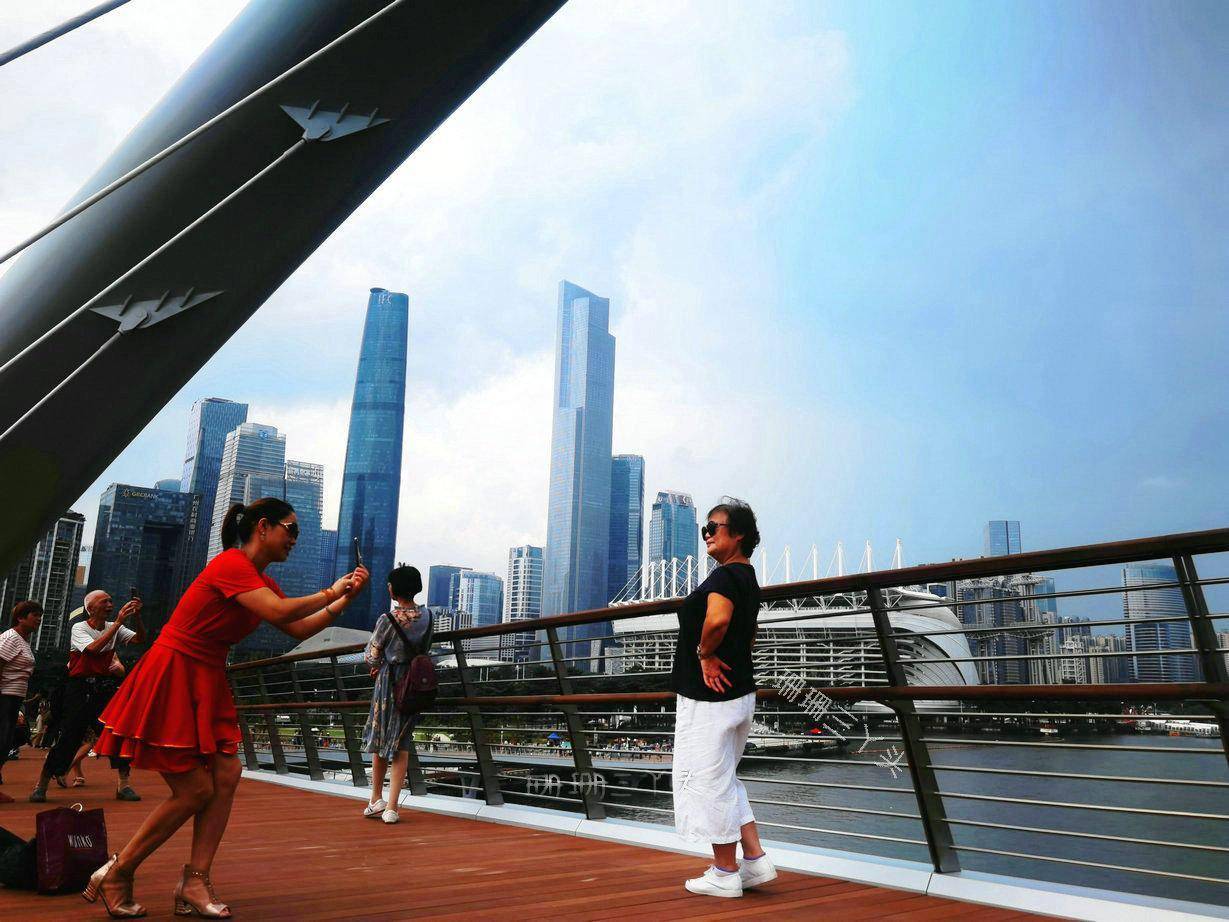 3、周边及其他:海心桥一侧是广州的地标广州塔,另一侧是海心沙公园、二沙岛公园、鸿城公园、花城广场,可以连在一起一起游玩。