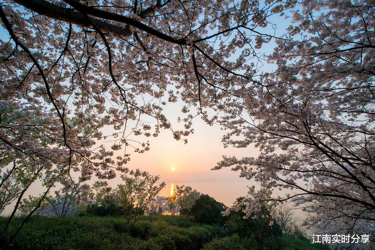 太湖浑沙湾樱花落日