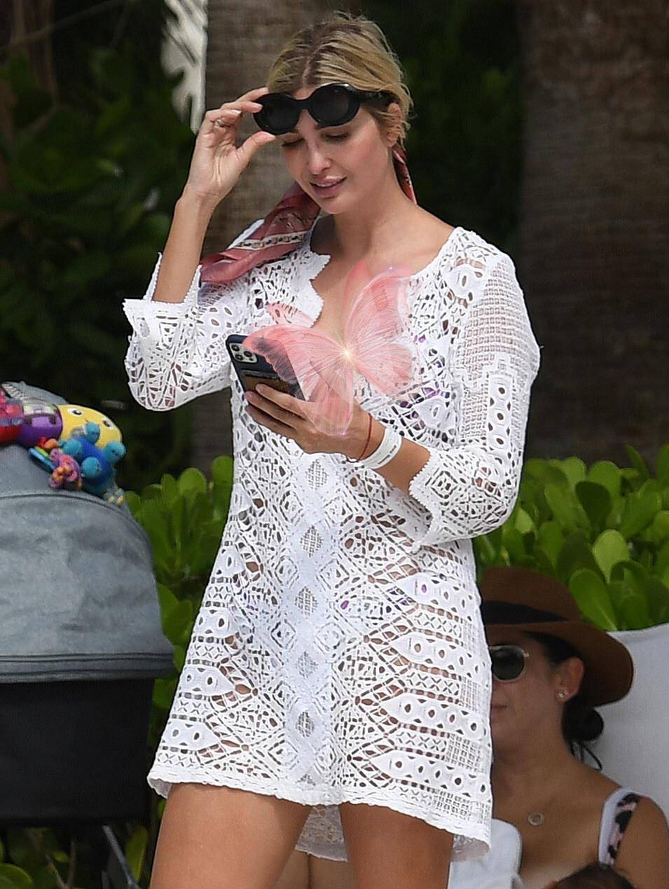 前首富千金伊万卡的衣服和以前完全不一样了。现在的伊万卡不需要考虑太多的正式,穿自己舒服的就可以了。刚刚过去的周末,伊万卡一家五口在迈阿密水上乐园玩耍,伊万卡难得展示自己的时尚和事业线。