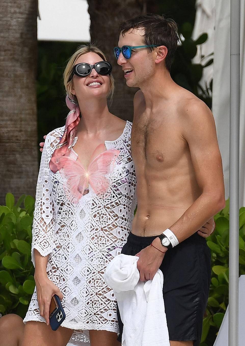 伊万卡与老公水上乐园激吻!搭配上衣时尚太时髦,老公腹肌抢镜