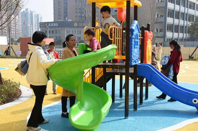 最受小朋友欢迎的莫过于滑滑梯和荡秋千,伴随秋千荡起,孩子们的脸上绽放着灿烂的笑容。