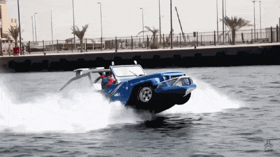 而且不用担心车速,比如这辆 四轮两栖车,水陆速度都能达到72km/h。
