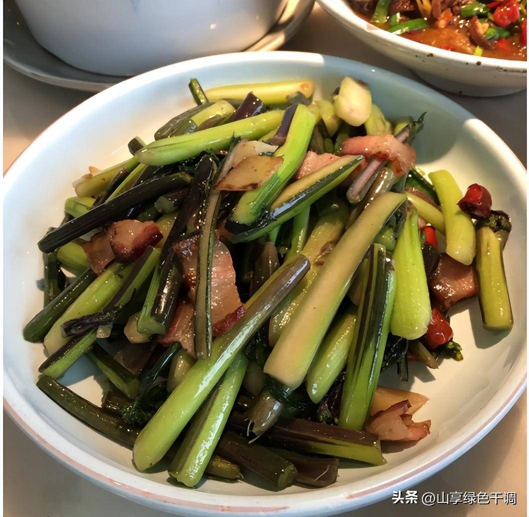 主要原料是猪肉、蒜苗和紫甘蓝。紫甘蓝芽是湖北的特产。陈雪在家乡好像没见过这种蔬菜。在古代,它一直被用作皇帝的土产。口感香脆,色泽更美。可以说是一道家喻户晓的简单家常菜。
