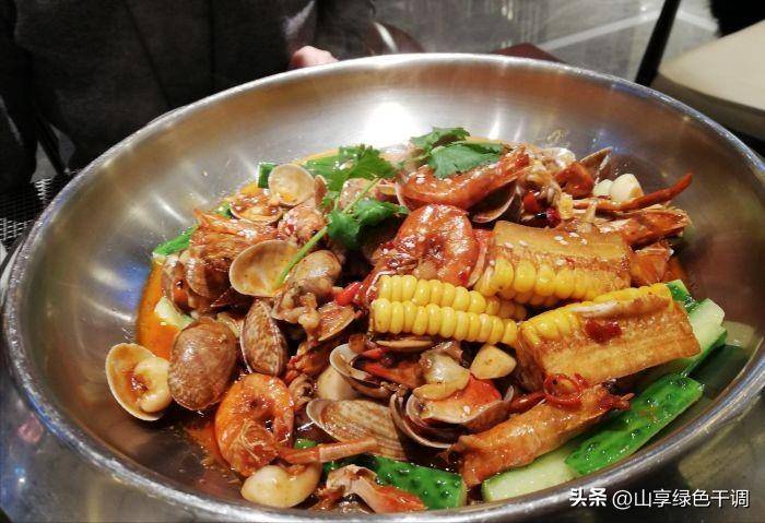 这道菜里有各种配料,一起炒。陈雪认为这类似于火锅,里面有鹌鹑蛋、鱿鱼、田鸡、玉米肠和鳗鱼。气质微辣,酱汁香气浓郁,里面的食材还蛮新鲜的,适合下饭。