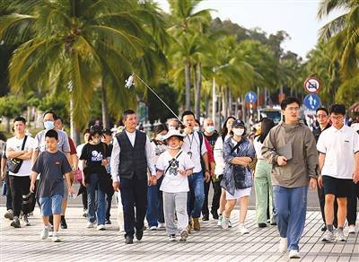 海南省三亚市是国内避寒游目的地之一,图为游客在三亚南山文化旅游区游览。陈文武摄(人民图片)