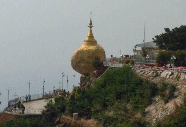 官员们驱车来到大金石,远远看到一座佛塔安稳地坐在巨大岩石之上,阳光下闪烁着耀眼的金光。这让他们松了一口气。大金石是缅甸最重要的佛教朝圣地之一,位于博固旁的洁缇幽山顶,吸引了众多游客。