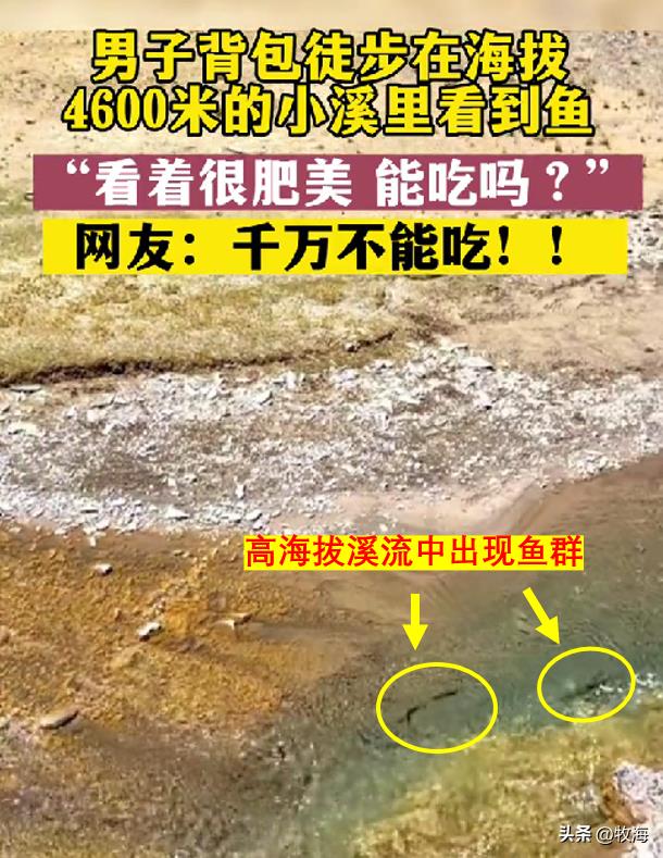 这不,一个人在西藏徒步旅行时,在海拔4600米的河流中发现了一群鱼。视频中的鱼儿在清澈的水中捕食嬉戏,目测体长20多厘米。男子看到后很疑惑,于是拍了视频问网友:“看起来很酷,我可以吃吗?”网友们的反应出奇的一致:别吃了!