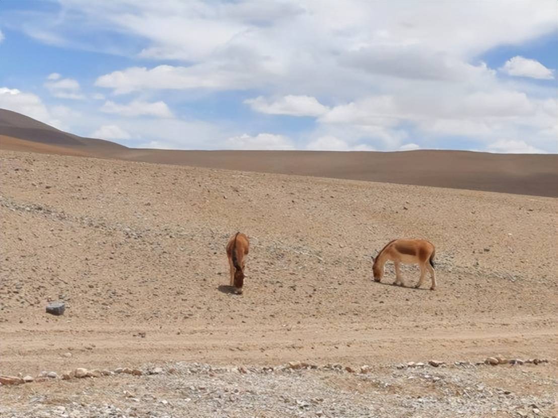 不过,路上的野生野驴和藏羚羊,比阿里地区还多,特别是可可西里地区,成群的野驴和藏羚羊根本不怕人,甚至不怕大卡车在高原上偶尔喇叭的鸣笛声,都吓不到藏野驴和藏羚羊在马路边吃草和散步。