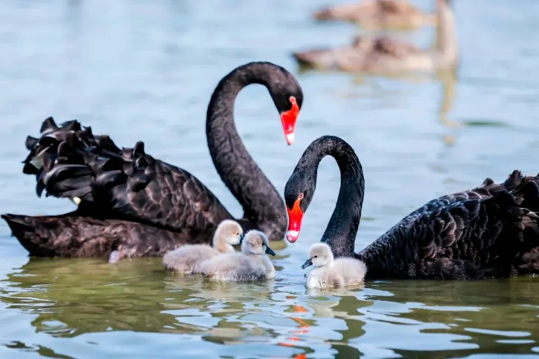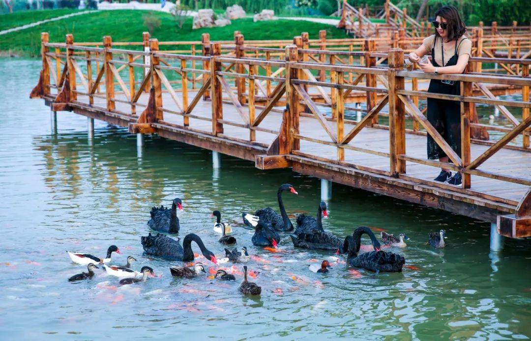 成对的天鹅、纷飞的大雁、畅游的锦鲤为这个夏日增添了欢乐和浪漫。
