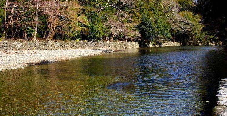 大部分神社都会设置“手水舍”(就是专门洗手用的,日本人特别喜欢),但是在内宫除了手水舍以外,在五十铃川畔还有一处御手洗场,作为洗手净身之处。五十铃川是条干净到如同水晶一般,清澈见底的美丽河川,河中还有鱼群,就在靠近御手洗场之处游来游去。