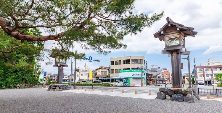 伊势神宫正式名称只有“神宫”两字,明治时代后,为了区别其他祭祀天皇祖先而冠以神宫名称的神社,故加上地名。神宫分为外宫与内宫,两地隔了一段不算近的距离。离车站较近的是外宫“丰受大神宫”,祭祀粮食与作物的女神“丰受大神”。由于业务范围雷同,许多稻荷神社也把他列为稻荷神之一。