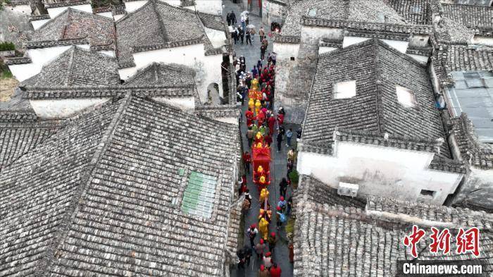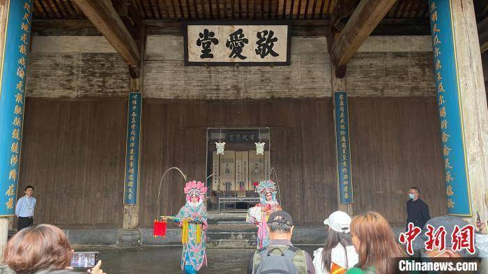 徽州传统婚俗秀正在西递景区上演,吸引了游客的目光。表演通过抛绣球选好女婿的形式,与游客互动,产生徽派文化的祭祀场景。同时,景区还举办徽剧演出,让游客近距离观赏徽剧。