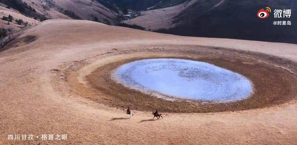 记者了解到,名胜“格聂之岩”就位于精灵景区。是一个直径约50米的天然湖泊。因为水草被分成圆圈,形状像一只瞳孔,映照着格聂神山就像一只明亮的眼睛。从太空看,它清晰如纸条,犹如大地之瞳望天,故有“天空之眼”之称,深受众多游客和户外运动爱好者的喜爱。