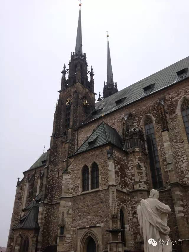 现代的城市依然留有历史的痕迹,位于山坡上的圣彼得与圣保罗大教堂是布尔诺最显著的地标,从城内任一角落都可看得一清二处,两个高耸的尖塔是其新哥德式建筑的最佳标记。圣保罗教堂每到上午11点就会敲响12下。这也是有一段公案。据说在三十年战争中,一名瑞典将军曾说能在正午12点攻陷布尔诺,否则退兵,布尔诺11点时已经兵临城下,眼见就要沦陷,此时守着大教堂钟塔的老人将11时谎报成12时,而瑞典将军不察,遵守信诺就退兵了。从那一天起,圣彼得和保罗大教堂每天上午11时都报时为正午。都说兵不厌诈,瑞典将军信守诺言撤兵却让人觉得还挺仗义。不过我们更多听到的是宜将剩勇追穷寇,不可沽名学霸王。孰是孰非?