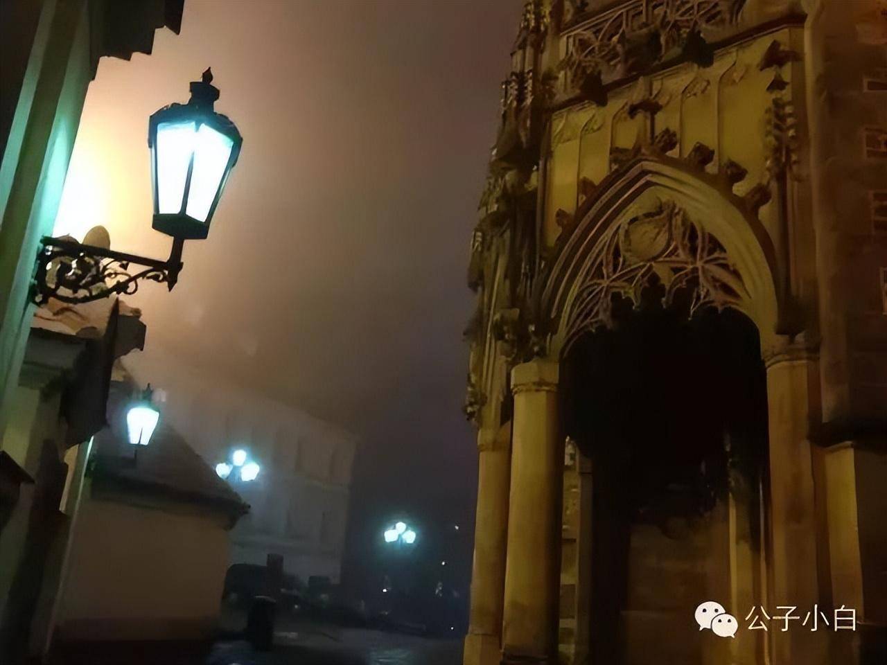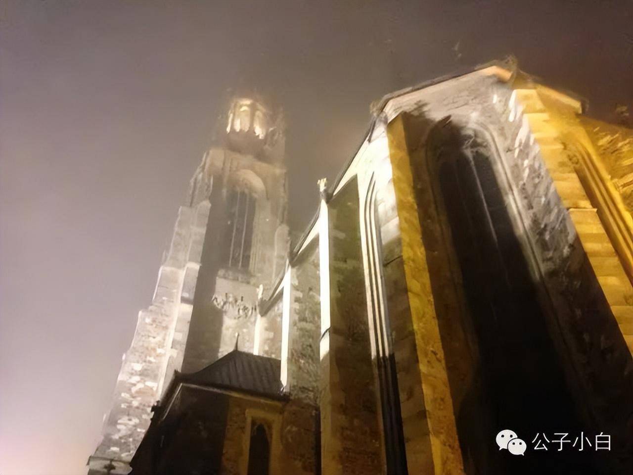 夜色中的教堂局部。