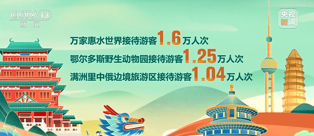 内蒙古自治区鄂尔多斯野生动物园、万家惠水世界、满洲里中俄边境旅游区等景区迎来大批游客。其中人气最高的万家惠水世界接待游客1.6万人次,鄂尔多斯野生动物园接待游客1.25万人次,满洲里中俄边境旅游区接待游客1.04万人次。