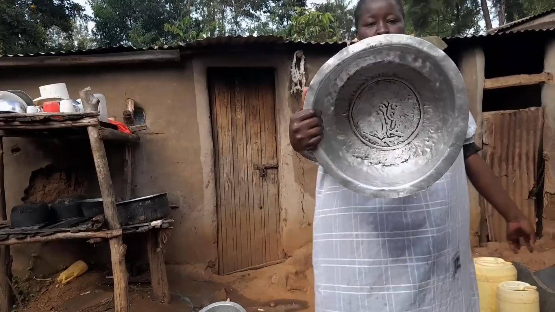 尽管地面是泥土的,但他们仍然用自制的扫帚清扫泥土表层和残渣,保持地板的干净。清洗完的锅碗瓢盆都闪闪发亮,比很多生活条件很好的家庭还要干净。
