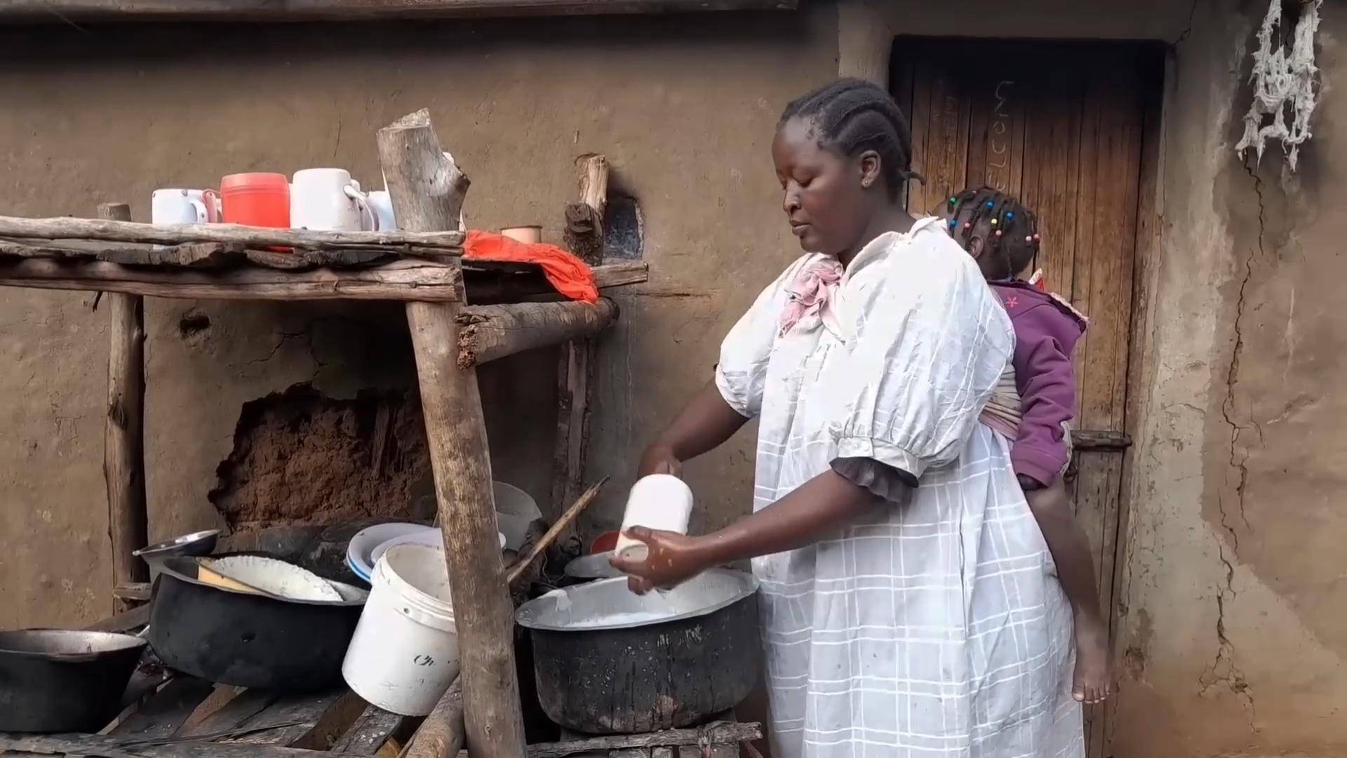 这个家庭中的每个人都很忙碌。金丽的阿姨负责照料几只羊,这对他们来说是非常重要的财产。在院子里,他们有一个典型的非洲架子,几乎每个肯尼亚家庭都有。这个架子非常实用,用来清洗餐具和晾晒物品。