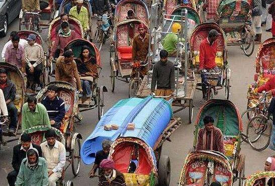 要说达卡最独特的城市风采,那就要说是三轮车大军满街跑,那真的是川流不息、浩浩荡荡。达卡是世界上人力三轮车数目最破纪录的城市,最保守估计首都大约每天挤着70万辆三轮车,而且整辆车都被画得五颜六色,当被困在不能动弹的交通阻塞里,也还能逐辆慢慢欣赏。达卡政府曾做过一份数据统计,整个城市每天困在拥堵的交通中浪费的时间高达320万工时,每年因此产生高达数十亿美元的经济损失!怪不得达卡很贫穷,时间都浪费在路上了,哪儿还能上班赚钱啊。