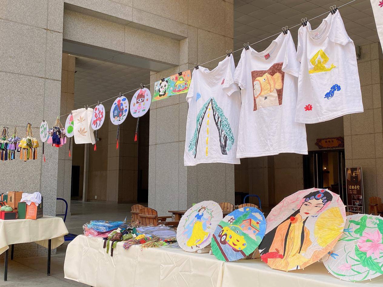 谁知没走几步,女儿又被般若门下布置的寻唐记手工作坊吸引去了,香包、五色彩绳、趣味彩绘、扇面、伞面、沙画、免费体验的趣味泡泡秀……各种活动,简直应有尽有,孩子玩的乐不思蜀。