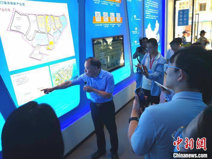 6月21日,记者采访团来到厦门海洋经济公共服务中心。 中新社记者 刘亮 摄