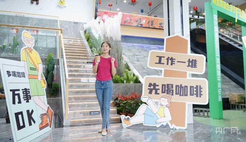 服务区“创意咖啡集市”掀起了一场“文创秀”,茉莉咖啡门前一些年轻人举起手机拍照——“人生无解,喝杯拿铁”“压力多多,喝杯浓缩”等趣味文案让自己手中的咖啡有趣了起来。