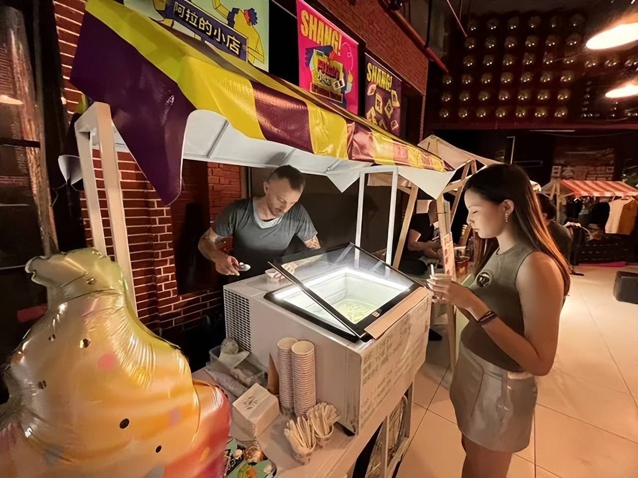 随着夜幕降临,作为上海夜经济的标杆地区之一,FOUND158也启动了夜娱嘉年华。在下沉式广场,FOUND 158联合SHANG!一起举办的“阿拉的小店”市集活动有一些不同,