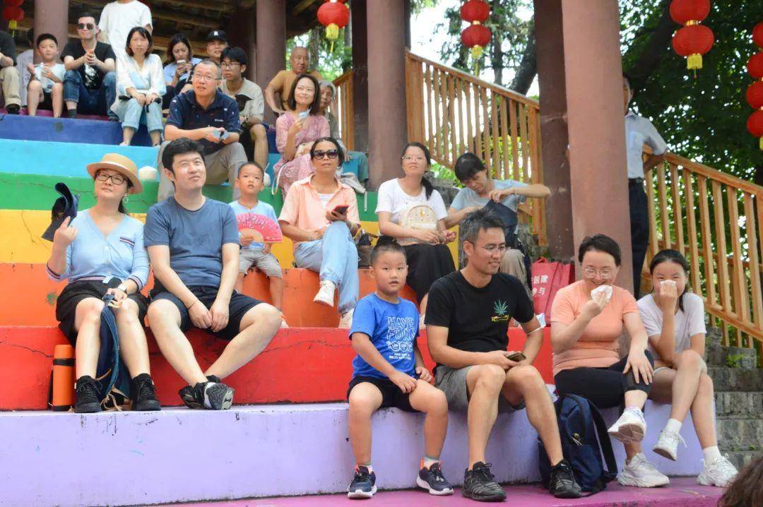 “爱护环境卫生,讲究社会公德,请勿攀爬。”记者看到,镜花缘旅游区在景区的人行道及醒目位置设置了各类文明提示标语,时刻提醒游客在欣赏美景的同时,要遵守文明准则,杜绝不文明行为。在“女儿国”景点,客家风情歌舞、客家山歌对唱、客家婚俗等节目精彩上演,各地来的游客有序围坐,欣赏着客家山歌等非遗节目,领略客家文化的魅力。