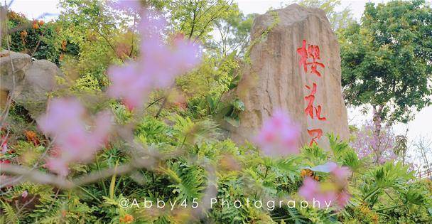 往里走一点就可以看到半山腰上樱花谷的石碑了,今年是暖春。2021年厦门的樱花比往年来得早一些,此刻正是赏花的好时节。不要99,不要9.9,完全免费开放哦。