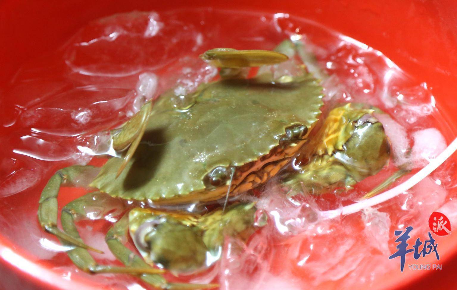 带回家后,先将奄仔蟹放入冰水里冻晕,防止它在烹制过程中挣扎,令到蟹膏漏出,断爪断脚。