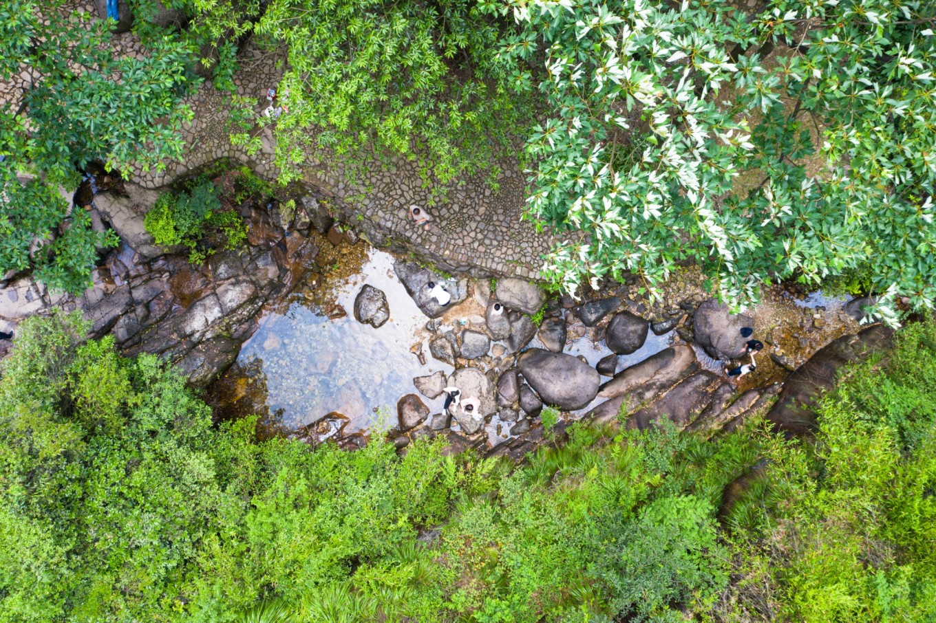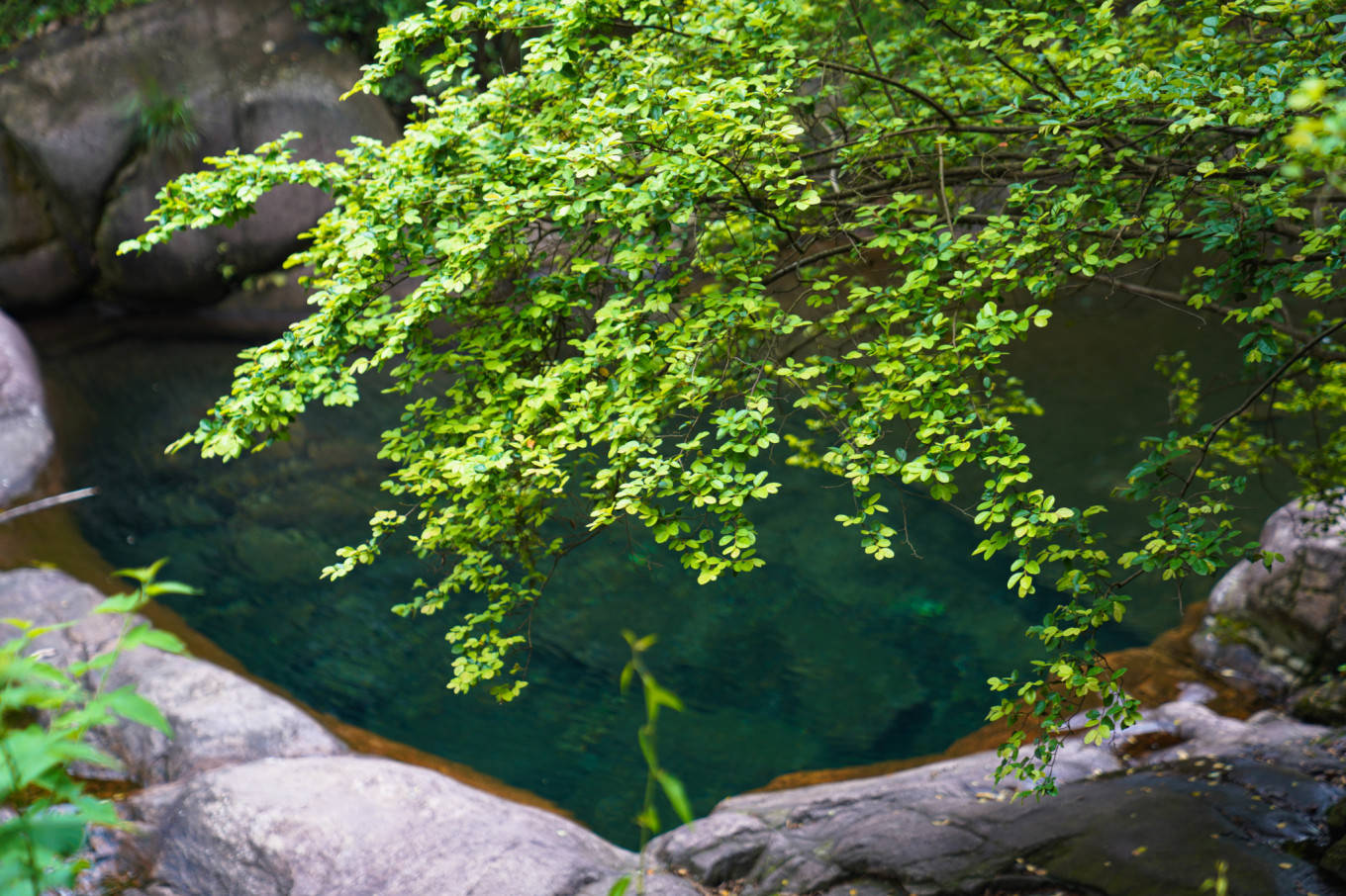 走过曲折有趣的石板路,再摇摇晃晃走过悬索桥,一段柳暗花明之后到达山顶的天池。天池湖水碧蓝清新,被誉为“森林中的蓝宝石”,这样的美丽景色令人陶醉其中。