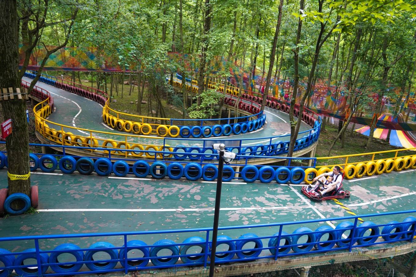 返程需要走一段平坦的山路,然后乘坐林中飞鼠来到了大奇山欢乐森林。里面有五大趣味体验项目:森林骑士、丛林魔网、酷跑卡丁车、树洞漂流、碰碰车,是桐庐首家建在森林中的大型游乐场。适合亲子游或者喜欢挑战的朋友,参与其中,感受无穷无尽的刺激和快乐。