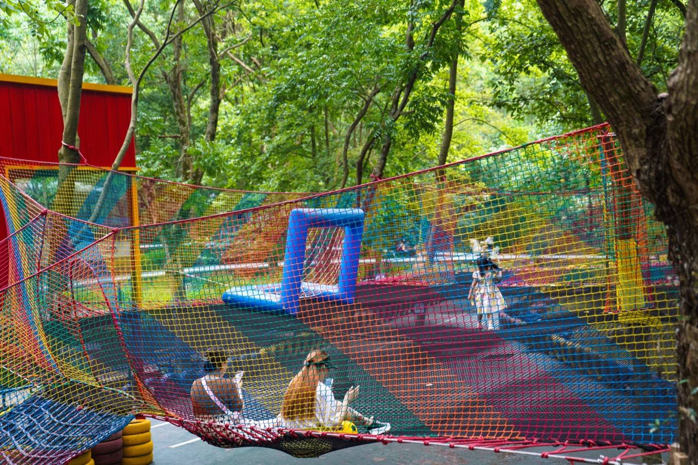 来到青青世界,这里是一个小儿童乐园,里面有秋千、独木桥等原木游戏,带小朋友可以来这里玩玩。这附近有几家小店,出售些零食。