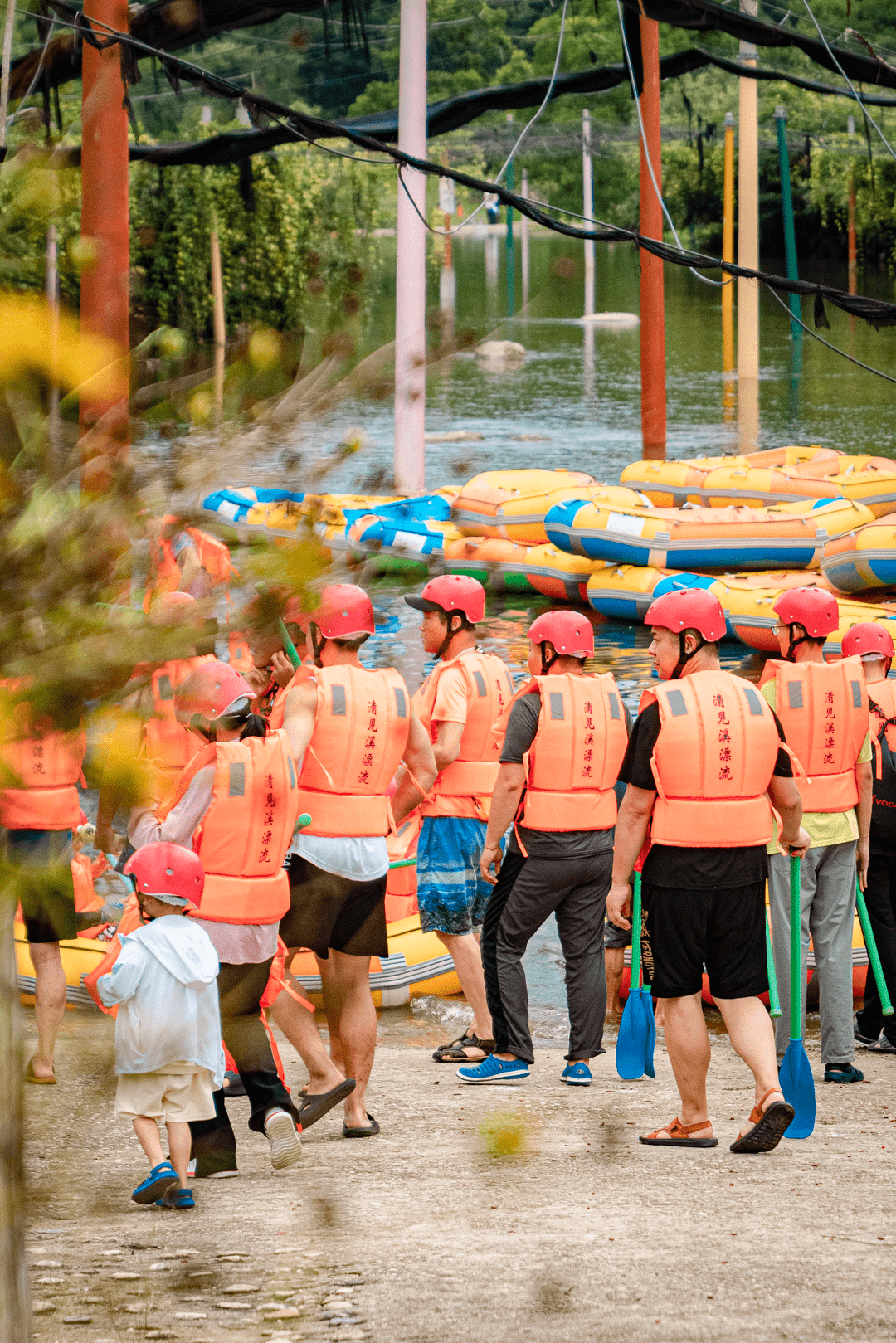 全长5.8公里的天然河道,总落差168米,大大小小的落差近20余处,玩一次需要90分钟,精彩刺激过足瘾!众人都跃跃欲试,想马上上船体验全程场景式的奇趣漂流。换好衣物、带好安全护具,激情开漂!