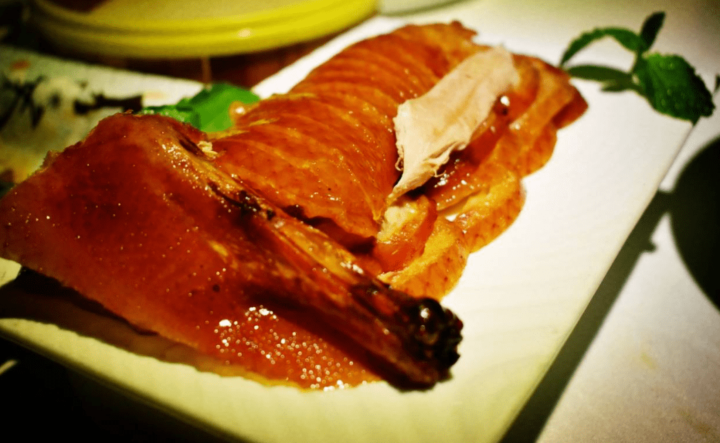 金陵烤鸭是南京的特色美食,与北京烤鸭有所不同。金陵烤鸭选用优质鸭子,经过独特的烤制工艺,鸭皮金黄酥脆,肉质鲜嫩多汁。与薄脆的脆皮鸭饼一同食用,配以葱丝、黄瓜条和甜面酱,口感丰富,美味无比。