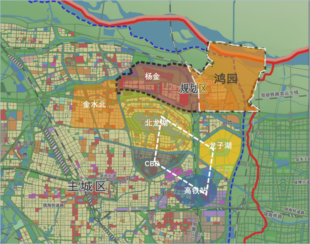 从金水科教园的总体规划图里,把鸿园片区截出来放大如下: