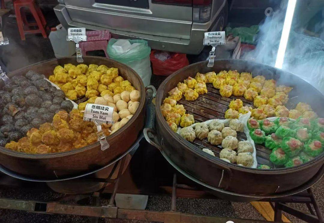 华人美食比如,炒粿条;炒萝卜糕(也叫菜头糕)——白萝卜制成的糕点拿去炒,辅以酱油,老抽,鸡蛋和大蒜,也是一种来自中国的特色美食;各种甜点,点心,比如烧麦,糯米鸡,薄饼(Popiah)——夹了豆芽菜,鸡蛋丝以及豆干丝的类似于春饼的美食。沙爹和椰浆饭就更不用说了。各种串串,很便宜。