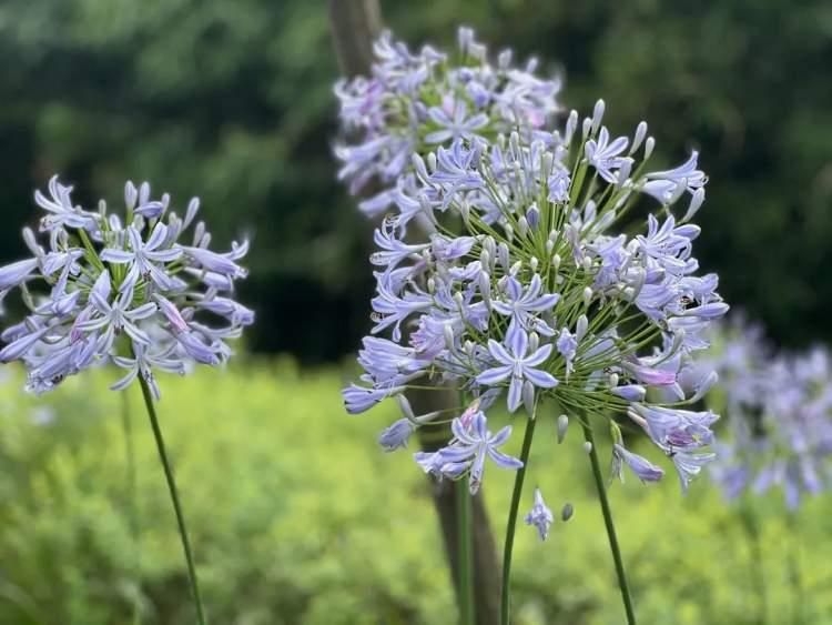除了睡莲,绿道里夏花中的佼佼者当属百子莲,它花形秀丽,叶丛浓绿而光亮,花朵繁茂,齐放时像一个蓝紫色的大绣球,犹如清泉般驱走令人烦躁的暑热。