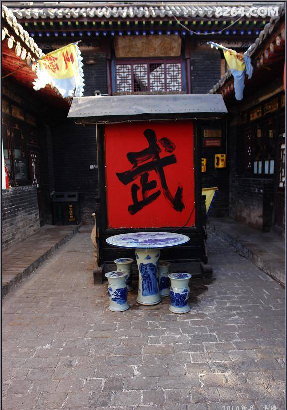 平遥同兴公镖局位于平遥古城南大街105号,时为平遥名扬京城、威震全国的王正清武林大师创立于清咸丰五年(1855)年创建,其子王树茂尽得其真传且有青出于蓝之势,因而同兴公镖局创立之始就成为当时全国著名镖局之一。