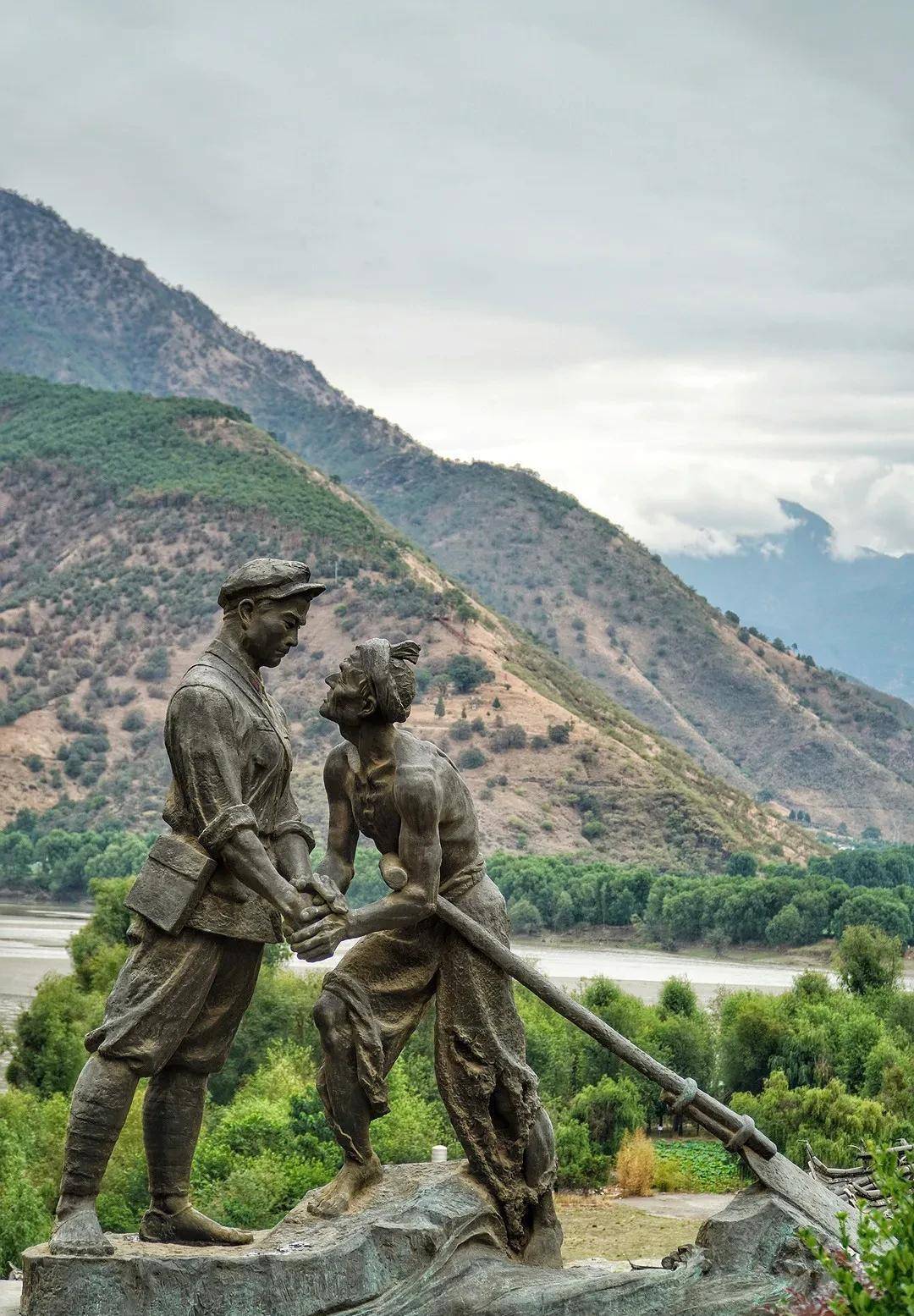 ❸ 第三位出场的是明代的徐霞客。他不是传说!但是,他也没有来过石鼓镇。为了搞清楚长江的源头,他数次请求木增提供方便。但都被拒绝了,甚至连石鼓渡也没有机会前往,更不用说金沙江以北当时属于吐蕃各部的地界。石鼓是汉藏交流的重镇。徐霞客并没有机会前来。不过,在石鼓镇倒是有一尊他的雕像。我一开始以为是诸葛亮呢!