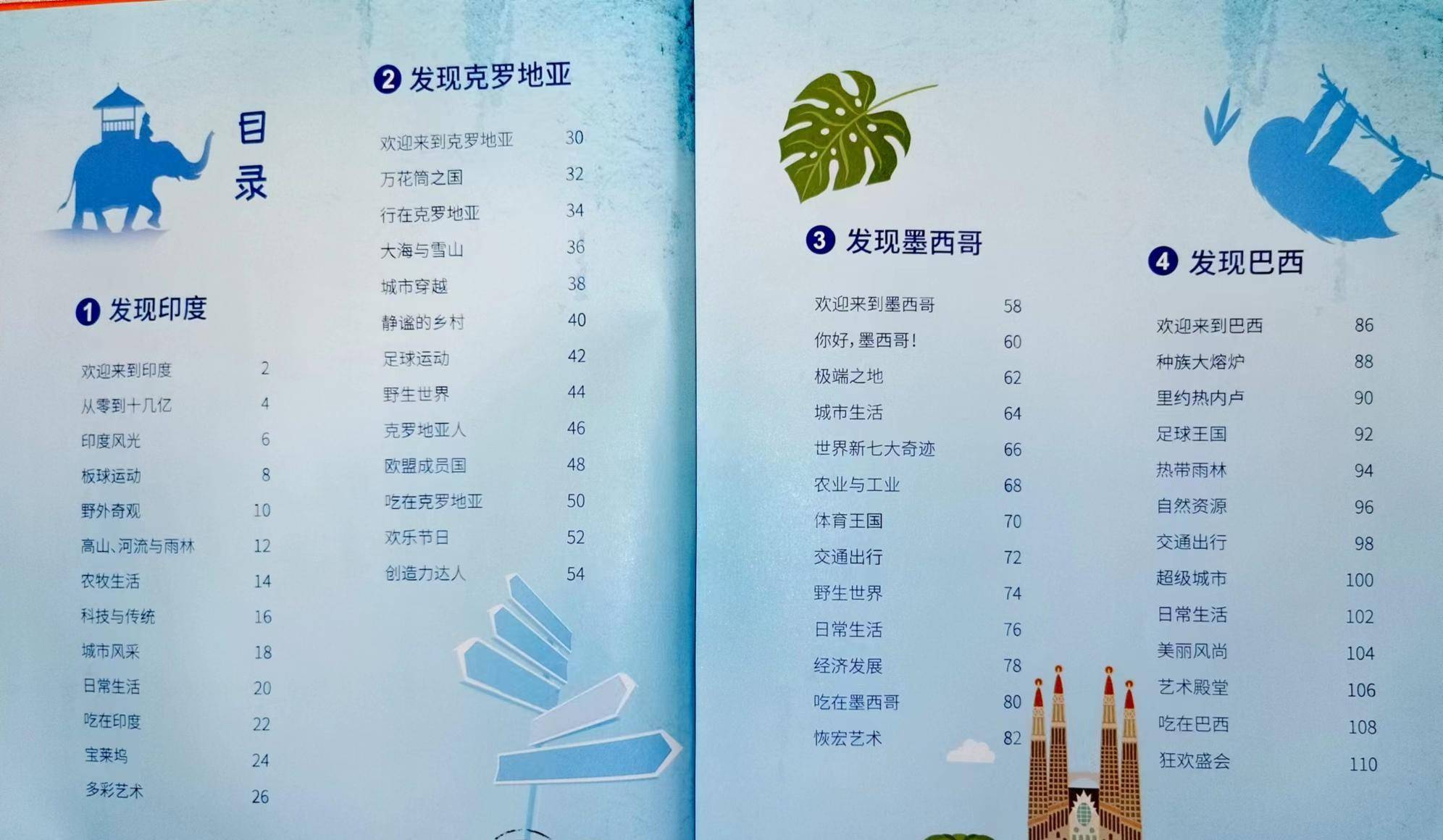 这套书的名字叫《绕着地球去发现》,书中介绍了13个国家的基本概貌、风土人情、休闲娱乐、美食佳肴……,堪称送给孩子的“世界环游指南”。