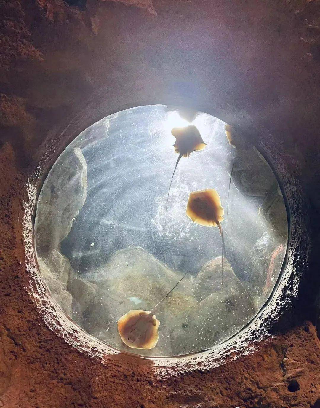 头顶一只大鳐鱼贴着玻璃用它的“肚脐眼”看了我们的帐篷一宿。